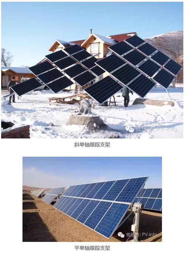 光伏支架分為:固定式支架、可調(diào)式支架、跟蹤式支架。跟蹤式支架又分為:全軸跟蹤、斜單軸跟蹤、平單軸跟蹤三個類別。